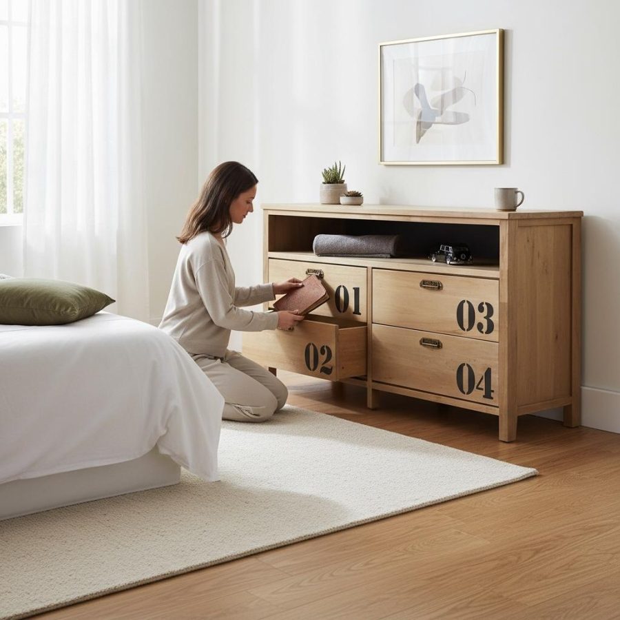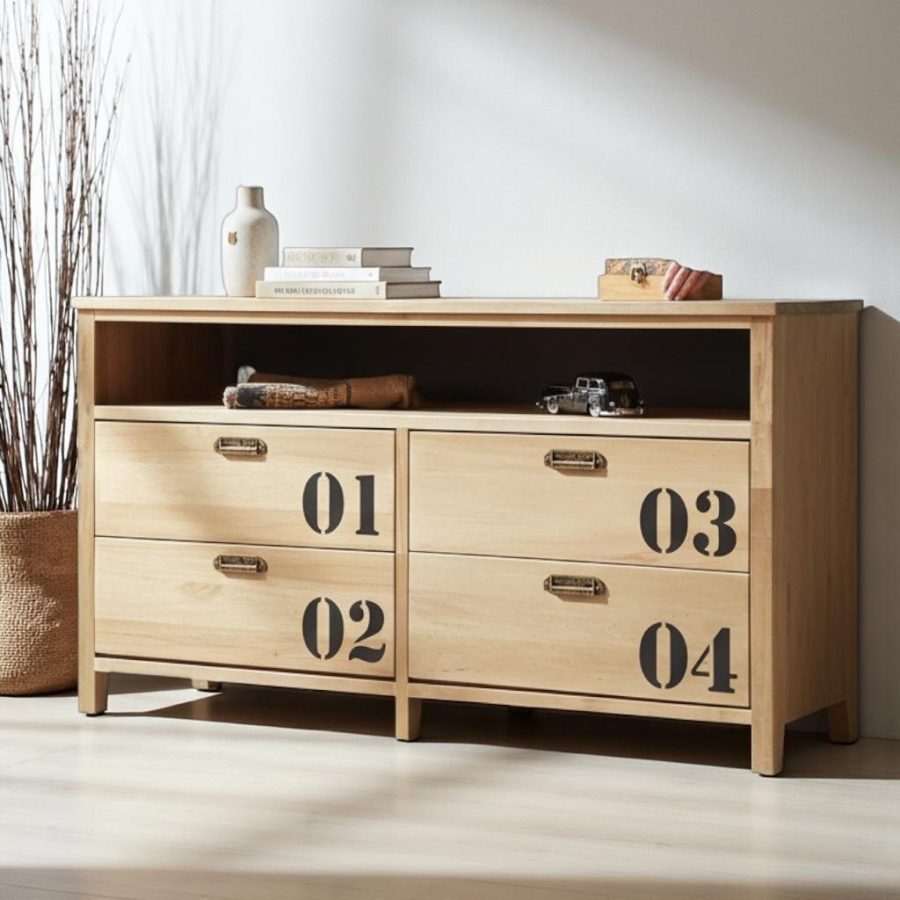 Ideal para LCD hasta 50′ (1,20mts). Original mueble vintage con cajones, estampado. Grandes cajones con guías telescópicas y un cómodo estante para colocar consolas, Home Theatre o Dvd. Ideal para usar como mueble Tv o mueble consola en el living o en una galería.