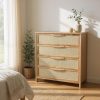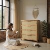 Fabricada en madera maciza de álamo (1era) con tinta color petiribí y terminación en laca poliuretánica, esta cajonera alta refleja la armonía del estilo Japandi. Cuatro cajones espaciosos con frente entelado en auténtica rafia tostada agregando textura y sofisticación, guías telescópicas asegurando un deslizamiento suave y preciso.