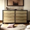 Fabricada en madera maciza de álamo (1era) con tinta color petiribí y terminación en laca poliuretánica con 8 grandes cajones, esta cajonera alta refleja la armonía del estilo Japandi. Cuatro cajones espaciosos con frente entelado en auténtica rafia agregando textura y sofisticación, guías telescópicas asegurando un deslizamiento suave y preciso.