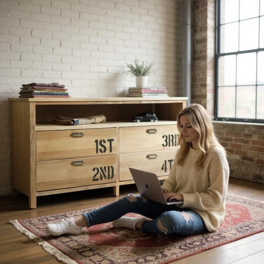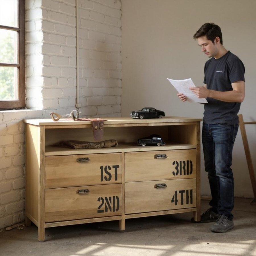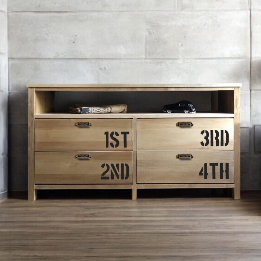 Ideal para LCD hasta 50′ (1,20mts). Original mueble vintage con cajones, estampado. Grandes cajones con guías telescópicas y un cómodo estante para colocar consolas, Home Theatre o Dvd. Ideal para usar como mueble Tv o mueble consola en el living o en una galería.